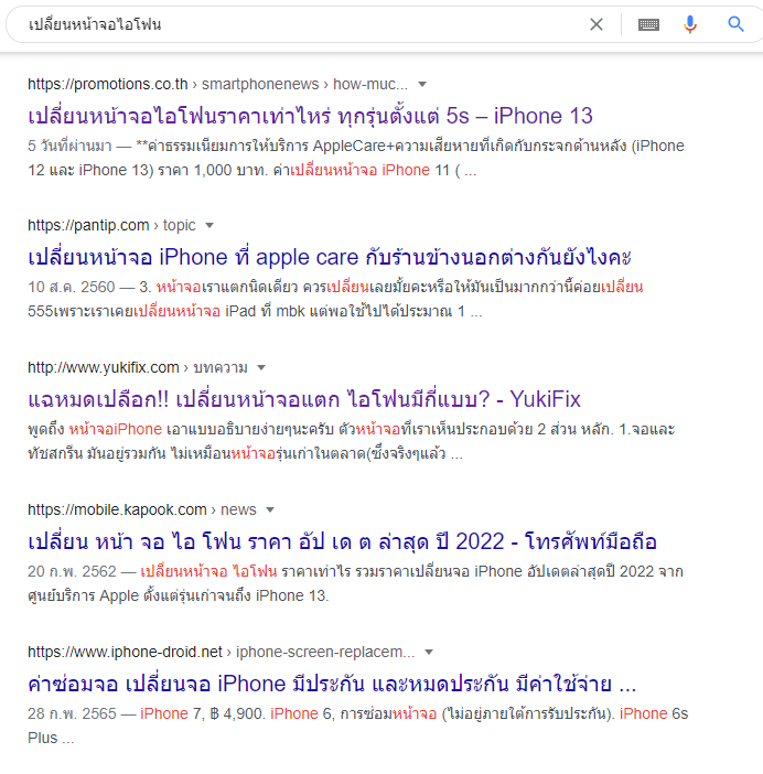 นำคีย์เวิดหลัก ( Primary Keywords ) เปลี่ยนหน้าจอไอโฟน ไปค้นหาในหน้า google